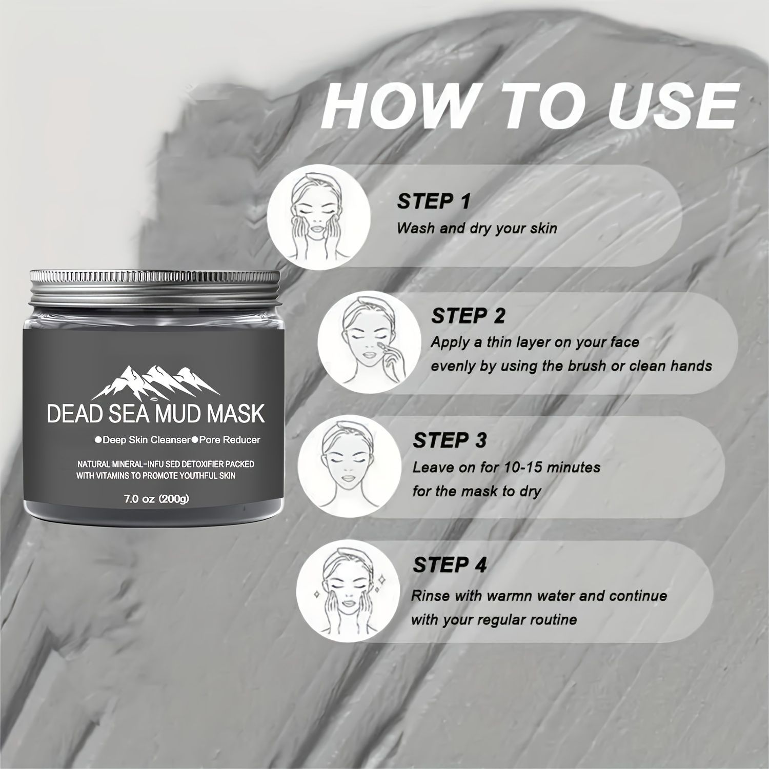 Dead Sea Mud Mask 7oz Moisturizing and Oil Control, Suitable for Face and Body, Fragrance-Free, Suitable for All Skin Types
